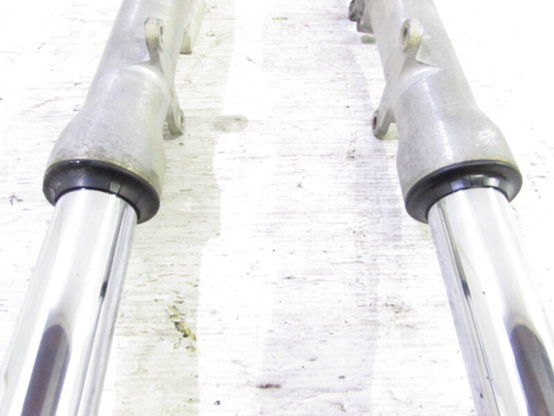 ☆フロントフォーク・・・目視で曲がりもなく、外観特に気になるような破損は御座いません!取り外し前に数回ボトムをさせてみましたところOIL滲みが見られました! ダストブーツにひび割れが出てきております!