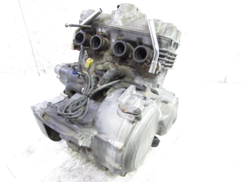 こちらの車両より取外したパーツ一台分を◆コチラ◆に出品しておりますので、ぜひご覧下さいませ。 ■商品詳細■ ☆フレーム・・・登録書類有! 目視で曲がりも御座いません! ☆エンジン・・・圧縮左から 約10.2kgf 約9.4kgf 約10.1kgf 約9.3kgf ☆フロントフォーク・・・インナーチューブ径 約41mm キャリパー取付ピッチ 約80mm ☆リアサスペンション・・・固定穴~固定穴 約325mm ☆Fホイール・・・ENKEI 17×3.00 ☆Rホイール・・・ENKEI 17×4.00 ☆Fタイヤ・・・IRC 110/70-17 ☆Rタイヤ・・・IRC 140/70-17 ☆ハンドル・・・高さ 約5cm 幅 約67cm