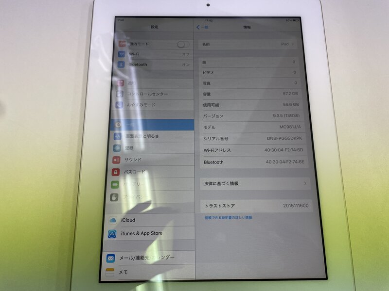 MI413 iPad 2 Wi-Fiモデル A1395 64GB ホワイト