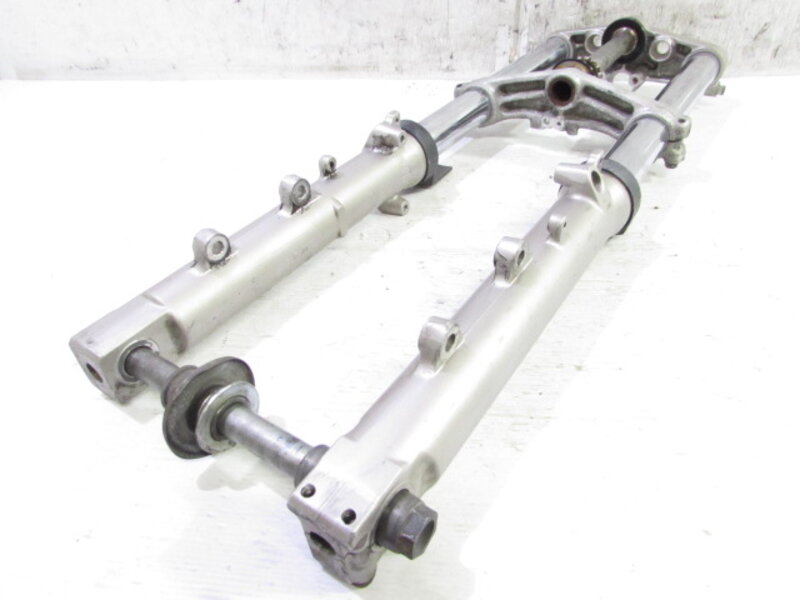 【足回り】 ☆フロントフォーク・・・目視で曲がりもなく、外観特に気になるような破損は御座いません!取り外し前に数回ボトムをさせてみましたところOIL滲みが見られました! ☆スイングアーム・・・目視にて曲がりもなく、外観特に気になるような破損は御座いません!シャフトなどのSETとなります! ☆リアサスペンション・・・目視で曲がりも無く、外観特に気になるような破損は御座いません! リンク付となります! ☆ホイール・・・前後共に目視で曲がりもなく、スムーズに回転しておりました! ☆タイヤ・・・前後共に実働車より取り外しており、特に気になるような目立ったひび割れは見られず残り溝もまだまだシッカリと御座います!