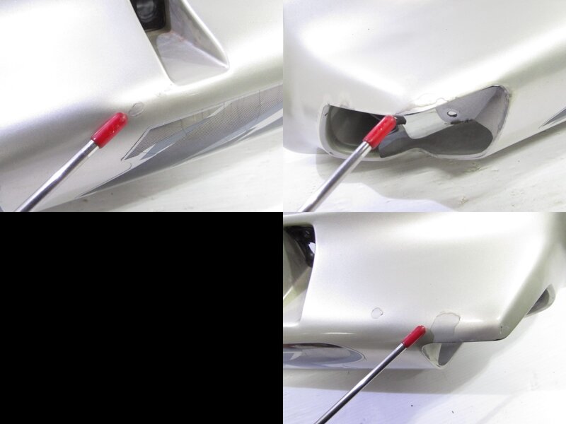 【外装】 ☆タンク・・・程度良好!! 特に気になるような破損はなく、艶も御座います! タンク内見える範囲に少し錆が見られますので燃料フィルターのご使用、または洗浄補修後のご使用をお勧めいたします! 一部軽い凹みが御座いますが、比較的状態の良い商品となります! ☆スクリーン・・・特に気になるような破損は御座いません! ☆アッパーカウル・・・特に気になるような破損はなく、艶も御座います! 一部タッチアップ補修が御座います! ☆アッパーインナーカバー・・・特に気になるような破損はなく、艶も御座います! メーターフードに一部ひび割れ補修やエッジの欠けが御座います! ☆アッパーサイドカウル・・・左右共に特に気になるような破損はなく、艶も御座います! 一部タッチアップや補修が御座います! ☆アンダーカウル・・・特に気になるような破損はなく、艶も御座います! 一部傷が御座います! ☆Fフェンダー・・・特に気になるような破損はなく、艶も御座います! 一部小傷が御座います! ☆テールカウル・・・特に気になるような破損はなく、艶も御座います! 一部タッチアップ補修が御座います! ☆Rフェンダー・・・特に気になるような破損は御座いません! ☆シート・・・特に大きな破損は御座いません! 一部軽いレザー破れが御座います! 補修してご使用ください!