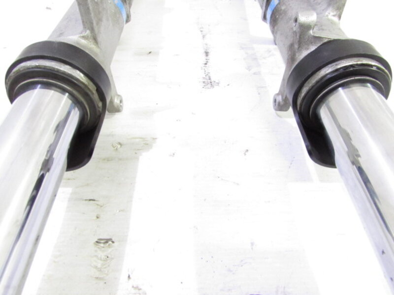 ☆フロントフォーク・・・目視で曲がりもなく、外観特に気になるような破損は御座いません!取り外し前に数回ボトムをさせてみましたところOIL漏れが見られました! ダストブーツに破れが出てきております!