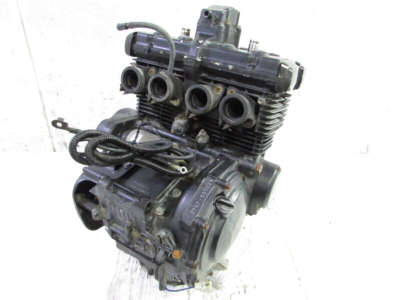 こちらの車両より取外したパーツ一台分を◆コチラ◆に出品しておりますので、ぜひご覧下さいませ。 ■商品詳細■ ☆フレーム・・・登録書類有! 目視で曲がりも御座いません! ☆エンジン・・・圧縮左から 約11.9kgf 約12.1kgf 約12.1kgf 約12.0kgf 電圧 13.18V ☆フロントフォーク・・・インナーチューブ径 約37mm キャリパー取付ピッチ 約55mm ☆リアサスペンション・・・固定穴~固定穴 約335mm ☆Fホイール・・・ASAHI 17×3.00 ☆Rホイール・・・ASAHI 17×4.00 ☆Fタイヤ・・・ダンロップ 110/70-17 ☆Rタイヤ・・・ダンロップ 140/70-17 ☆ハンドル・・・取り付け部径 約37mm