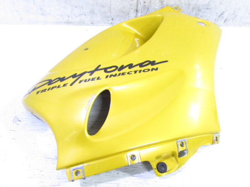 ■アピールポイント■ ☆初入庫!! 人気の高い トライアンフ デイトナT595 を入庫致しました! ☆上記車両より取り外しましたパーツを出品させて頂きます! ☆不動車での入庫となり始動確認は出来ておりませんが、クランキング及びエンジン圧縮確認、プラグよりのスパーク点火確認済となります! ☆外観は艶もあり、比較的状態良く保たれておりました! ☆アクラポビッチ製のフルエキゾーストマフラーが装着されており、大変格好よく極まっておりました! ☆前後ホイールはブレンボ製のメッキホイールとなっております! ☆ライディングハウス製のバックステップが装着されており、オシャレに極まっておりました! ☆社外製のカラースクリーンやLEDウインカー、カウリングミラーやフェンダーレスKIT、トマゼリ製セパレートハンドルやミツバサンコーワ製ドライブレコーダーなどが装着されておりました! ☆その他まだまだご使用になれます大人気の純正オリジナルパーツが多数御座います! ☆お客様に安心して御購入して頂く為に始動確認、充電電圧・圧縮測定を行っております! ☆修理やレストアをお考えの トライアンフ デイトナT595 や デイトナ955i などのオーナー様、是非このチャンスをお見逃し無くご入札宜しくお願いします!!