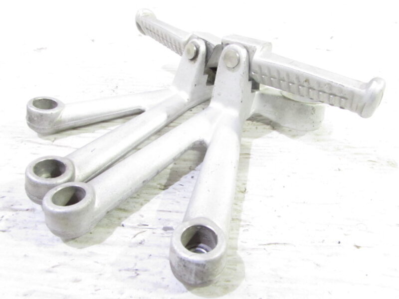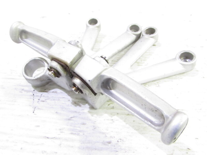 【足回り】 ☆フロントフォーク・・・イニシャルアジャスター付のフロントフォークになります! 目視で曲がりもなく、外観特に気になるような破損は御座いません!取り外し前に数回ボトムをさせてみましたところOIL滲みが見られました! ☆スイングアーム・・・大人気のプロアームになります! 目視にて曲がりもなく、外観特に気になるような破損は御座いません!シャフトやディスクローターなどのSETとなります! ☆リアサスペンション・・・SHOWA製のアジャスター付の別体タンク式リアサスペンションになります! 目視で曲がりも無く、外観特に気になるような破損は御座いません! リンク付きとなります! ☆ホイール・・・程度良好!! ブレンボ製のメッキホイールになります! 前後共に目視で曲がりもなく、スムーズに回転しておりました! 比較的状態の良い商品となります! リアに一部メッキ剥げが御座います! ☆タイヤ・・・前後共に実働車より取り外しており、特に気になるような目立ったひび割れは見られず残り溝もまだまだシッカリと御座います!
