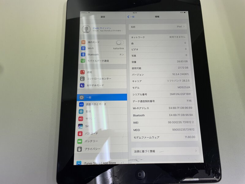 アクティベーションロック・・・OFF 画面割れ・光漏れ・液晶焼け