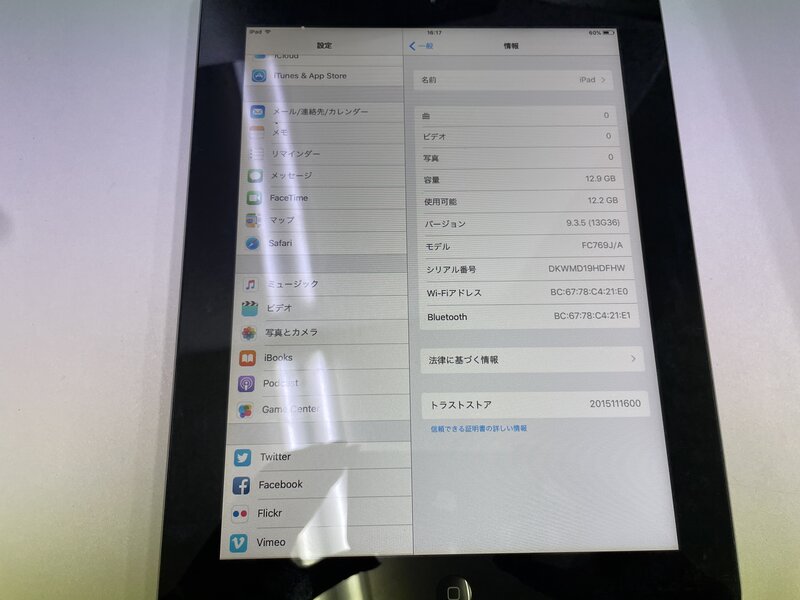MI828 iPad2 Wi-Fiモデル A1395 16GB ホワイト
