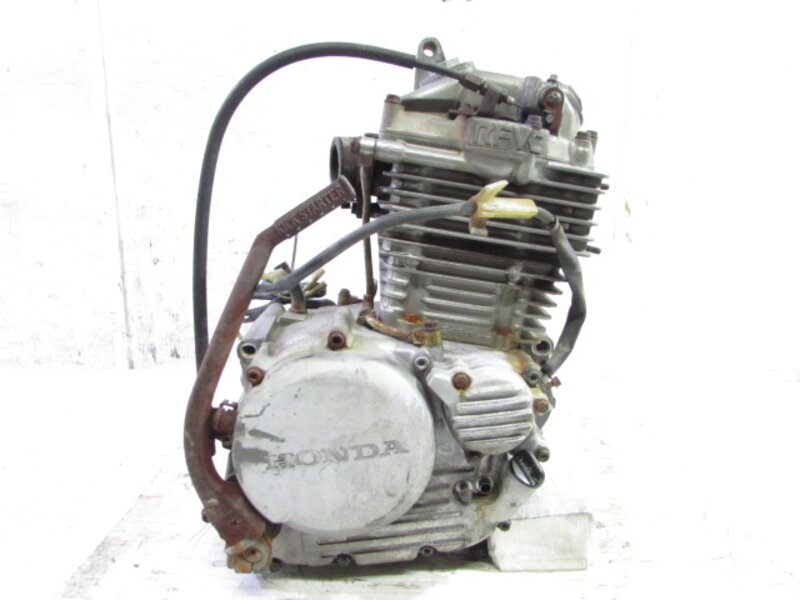こちらの車両より取外したパーツ一台分を◆コチラ◆に出品しておりますので、ぜひご覧下さいませ。 ■商品詳細■ ☆フレーム・・・登録書類有! 目視で曲がりも御座いません! ☆エンジン・・・圧縮左から 約12.0kgf 約12.2kgf 約12.2kgf 約12.2kgf ☆フロントフォーク・・・インナーチューブ径 約41mm キャリパー取付ピッチ 約100mm ☆リアサスペンション・・・固定穴~固定穴 約375mm ☆Fホイール・・・D.I.D JAPAN 21×1.60 ☆Rホイール・・・D.I.D JAPAN 18×2.15 ☆Fタイヤ・・・ダンロップ 3.00-21 ☆Rタイヤ・・・ダンロップ 4.60-18 ☆ハンドル・・・高さ 約7cm 幅 約80cm やや曲がり有 ☆予備パーツFフォークスプリング・・・全長 約450mm 外径 約42mm ☆予備パーツRサスペンションスプリング・・・全長 約220mm 外径 約80mm 内径 約60mm