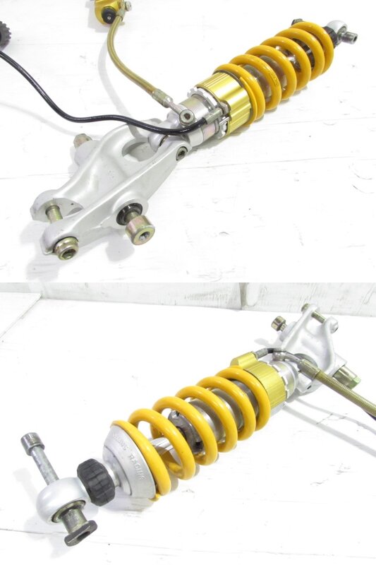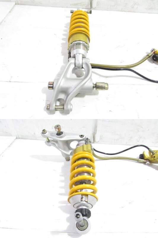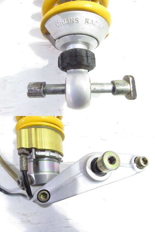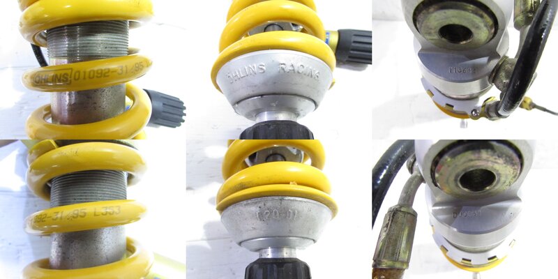 【足回り】 ☆フロントフォーク・・・程度良好!! 目視で曲がりもなく、外観特に気になるような破損は御座いません!取り外し前に数回ボトムをさせてみましたところ少しOIL滲みが見られました! ダストブーツにひび割れが出てきております! 全体的には比較的状態の良い商品かと思います! ☆スイングアーム・・・目視にて曲がりもなく、外観特に気になるような破損は御座いません!シャフトなどのSETとなります! ☆リアサスペンション・・・程度良好!! 大人気のオーリンズ製別体タンク式フルアジャスターリアサスペンションになります! 目視で曲がりも無く、外観特に気になるような破損は御座いません! なかなか綺麗で状態の良い商品となります! ☆ホイール・・・程度良好!! 前後共に目視で曲がりもなく、スムーズに回転しておりました!比較的状態の良い商品となります! ☆タイヤ・・・前後共に実働車より取り外しており、特に気になるような目立ったひび割れは見られず残り溝も御座いますのでこのままでのご使用は可能と思いますが、消耗品となりますので商品画像をご覧頂き状態の把握をお願い致します! リアのタイヤエッジに数ヵ所こぶが御座います!