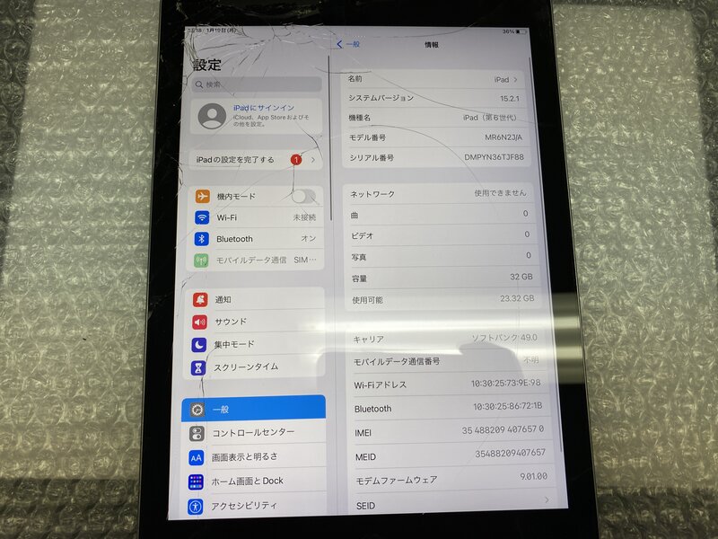 アクティベーションロック・・・OFF 画面割れ・インカメラ割れによる曇り