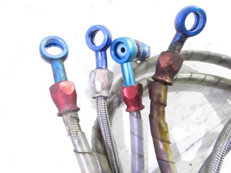 【足回り】 ☆フロントフォーク・・・イニシャルアジャスター付のフロントフォークになります! 目視で曲がりもなく、外観特に気になるような破損は御座いません!取り外し前に数回ボトムをさせてみましたところOIL漏れが見られました! ダストブーツに破れが出てきております! ☆スイングアーム・・・目視にて曲がりもなく、外観特に気になるような破損は御座いません!シャフトなどのSETとなります! ☆リアサスペンション・・・オーリンズ製の別体タンク式フルアジャスターリアサスペンションになります! 目視で曲がりも無く、特に気になるような破損は御座いません! スプリングの色剥げが御座います! ☆ホイール・・・前後共に目視で曲がりもなく、スムーズに回転しておりました!