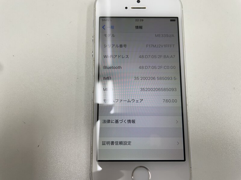 MJ200 docomo iPhone5s 64GB シルバー 判定〇