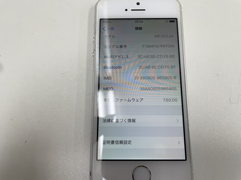 MJ202 au iPhone5s 16GB シルバー 判定〇