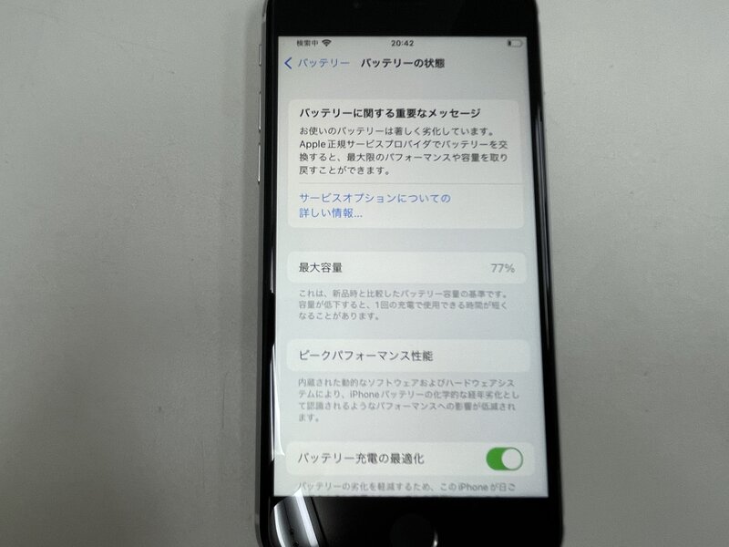 バッテリーに関しましては消耗品のため新品同様の性能を発揮しない場合がございます。予めご了承ください。