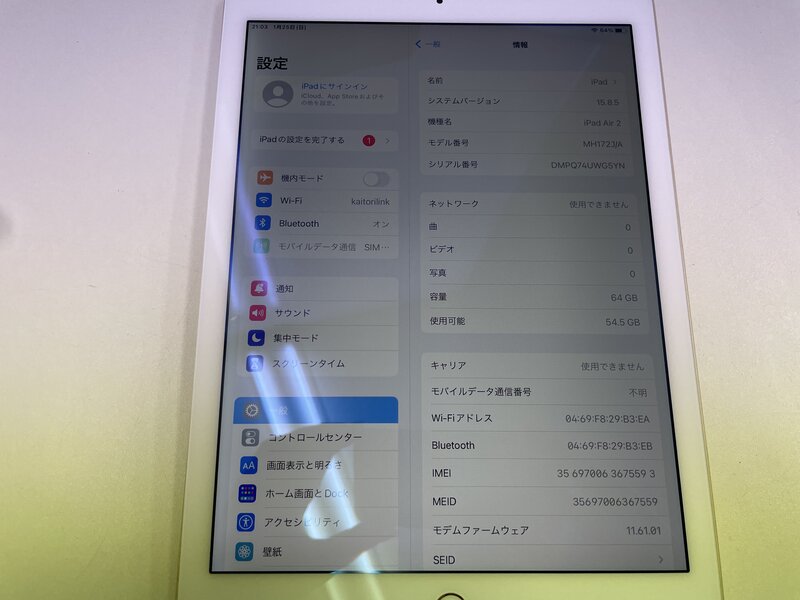 アクティベーションロック・・・OFF バッテリー膨張・パネル浮き