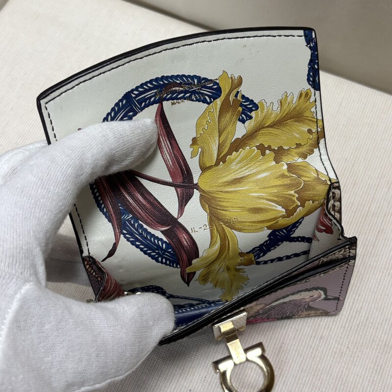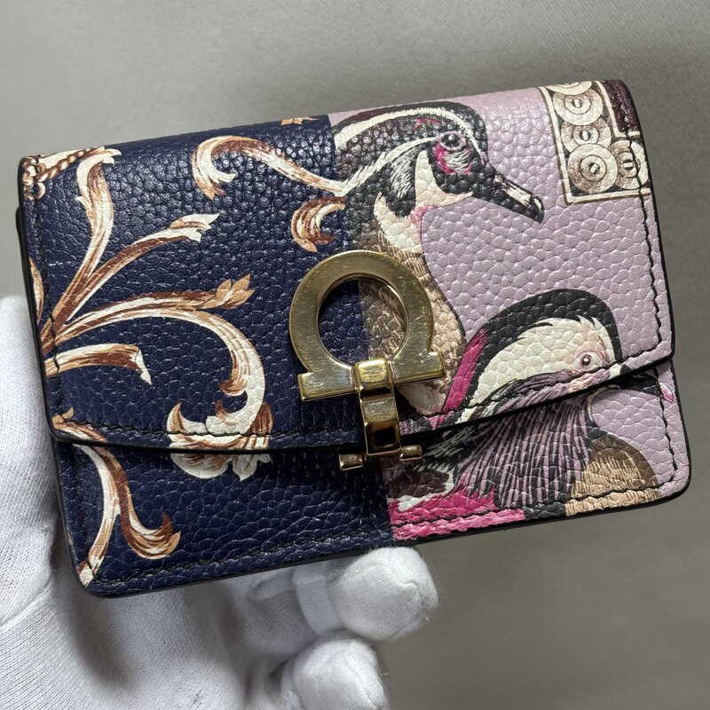 サルヴァトーレ フェラガモ カードケース ガンチーニ 留め金具 名刺入れ カモ柄 花柄 パープル系 IW601BA01FRR//