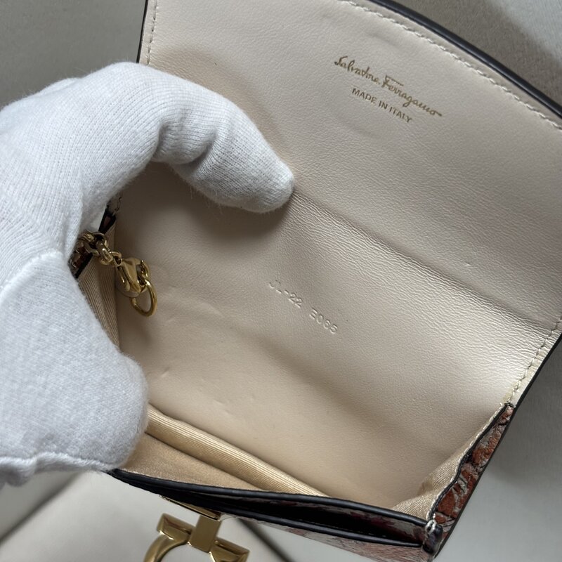 美品 サルヴァトーレ フェラガモ カードケース 花柄 オレンジ 白 ガンチーニ 金具 名刺入れ IW601BA02FRR_B//