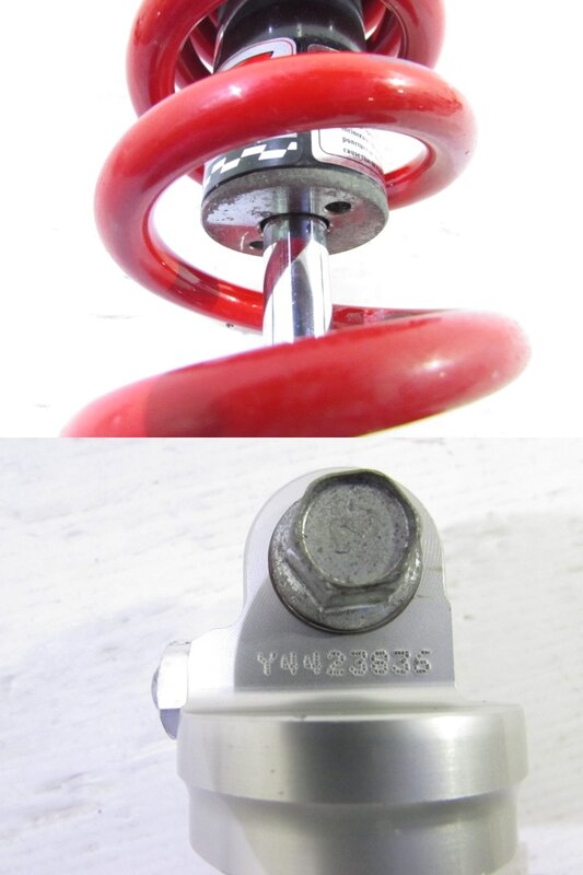 【足回り】 ☆フロントフォーク・・・程度良好!! TAKEGAWA製イニシャルアジャスター付の倒立フロントフォークになります! 目視で曲がりもなく、外観特に気になるような破損は御座いません!取り外し前に数回ボトムをさせてみましたが特に気になるようなOIL滲みは見られませんでした! 比較的状態の良い商品となります! ☆スイングアーム・・・目視にて曲がりもなく、外観特に気になるような破損は御座いません! ☆リアサスペンション・・・美品!! YSS製の車高調整式ハイブリッドリアサスペンションになります! 目視で曲がりも無く、外観特に気になるような破損は御座いません! 商品状態良好です! ☆ホイール・・・前後共に目視で曲がりもなく、スムーズに回転しておりました!