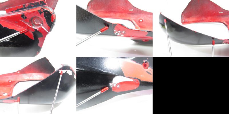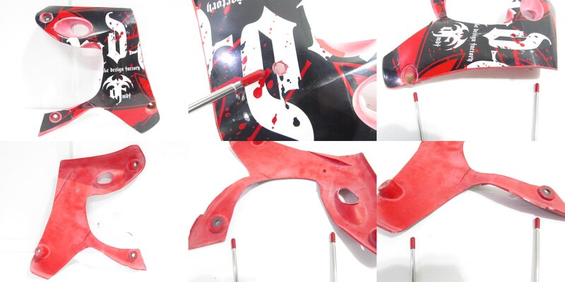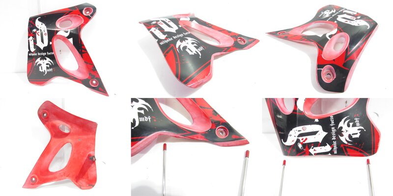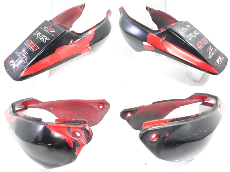 【外装】 ☆タンク・・・特に大きな破損はなく、艶も御座います! タンク内見える範囲に特に気になるような錆は見られません! 一部傷や塗装欠け、軽い凹みが御座います! ☆ライトカウル・・・社外製!! 特に気になるような破損は御座いません! 傷が御座います! 取り付けステー/ライト付きとなります! ☆Fフェンダー・・・後方が割れて欠損しておりますので商品画像よりご確認ください! ☆シュラウド・・・左右共に大きな破損は御座いません! 一部穴あけ加工やカット加工、色褪せなど御座います! ☆テールカウル・・・特に大きな破損は御座いません! 一部カット加工や穴あけ加工、ヒビ割れ等御座います! ☆シート・・・一部破れやベースに謎の小穴が御座いますので補修してご使用ください!