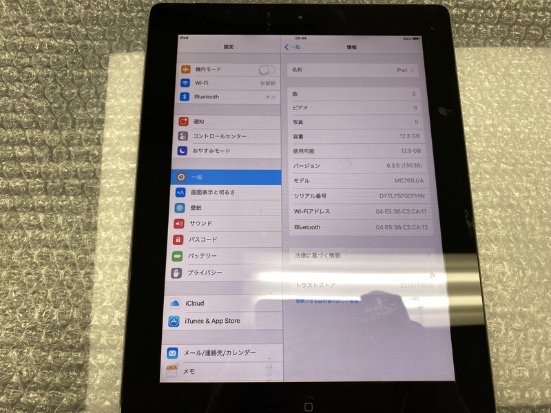 アクティベーションロック・・・OFF 画面浮き・電源ボタン不可・背面刻印有り