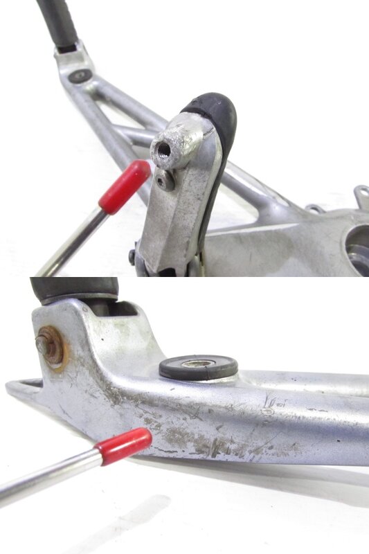 ☆フロントフォーク・・・目視で曲がりもなく、外観特に気になるような破損は御座いません!取り外し前に数回ボトムをさせてみましたところOIL漏れが見られました! ダストブーツにひび割れが出てきております! ボトムケースに一部傷が御座います!