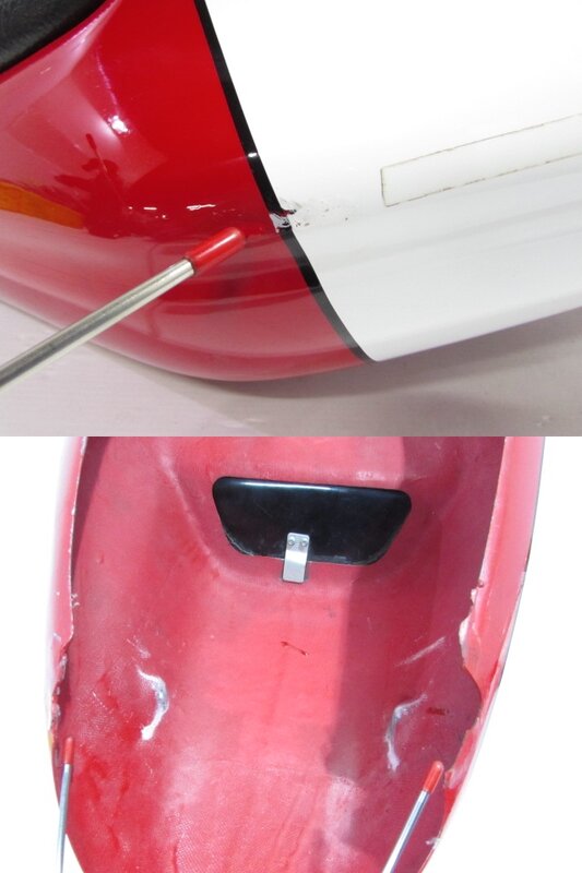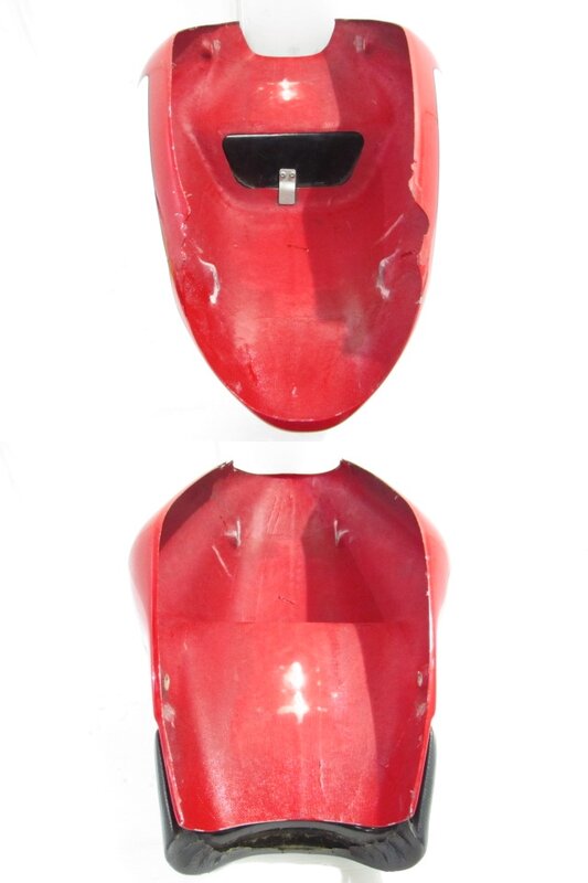 【外装】 ☆タンク・・・程度良好!! 特に気になるような破損はなく、艶も御座います! タンク内見える範囲に少し錆が見られますので燃料フィルターのご使用、または洗浄補修後のご使用をお勧めいたします! 一部傷が御座いますが比較的状態の良い商品となります! ☆スクリーン・・・程度良好!! 特に気になるような破損は御座いません! 比較的状態の良い商品となります! ☆アッパーカウル・・・特に気になるような破損はなく、艶も御座います! 一部ひび割れ、ひび割れ補修ヵ所が御座います! ☆アッパーサイドカウル・・・程度良好!! 左右共に特に気になるような破損はなく、艶も御座います! 商品状態良好です! ☆Fフェンダー・・・程度良好!! 特に気になるような破損はなく、艶も御座います! 一部傷が御座いますが比較的状態の良い商品となります! ☆シングルシートカウル・・・社外製のFRPシングルシートカウルになります! 特に大きな破損はなく、艶も御座います!一部傷、 底面に一部欠けが御座います! シートが付属しております! ☆Rタイヤフェンダー・・・程度良好!! MSプロダクション製のドライカーボンリアタイヤフェンダーになります! 特に気になるような破損はなく、艶も御座います! 一部フチ欠けや削れ穴が御座いますが比較的状態は悪くないかと思います! ☆シート・・・特に大きな破損は御座いません! 一部極小さな破れやフチにレザーの表面剥げが御座います! シングルシートカウルに付属させております!