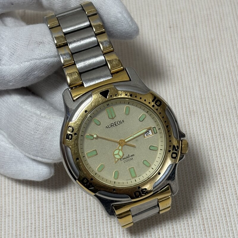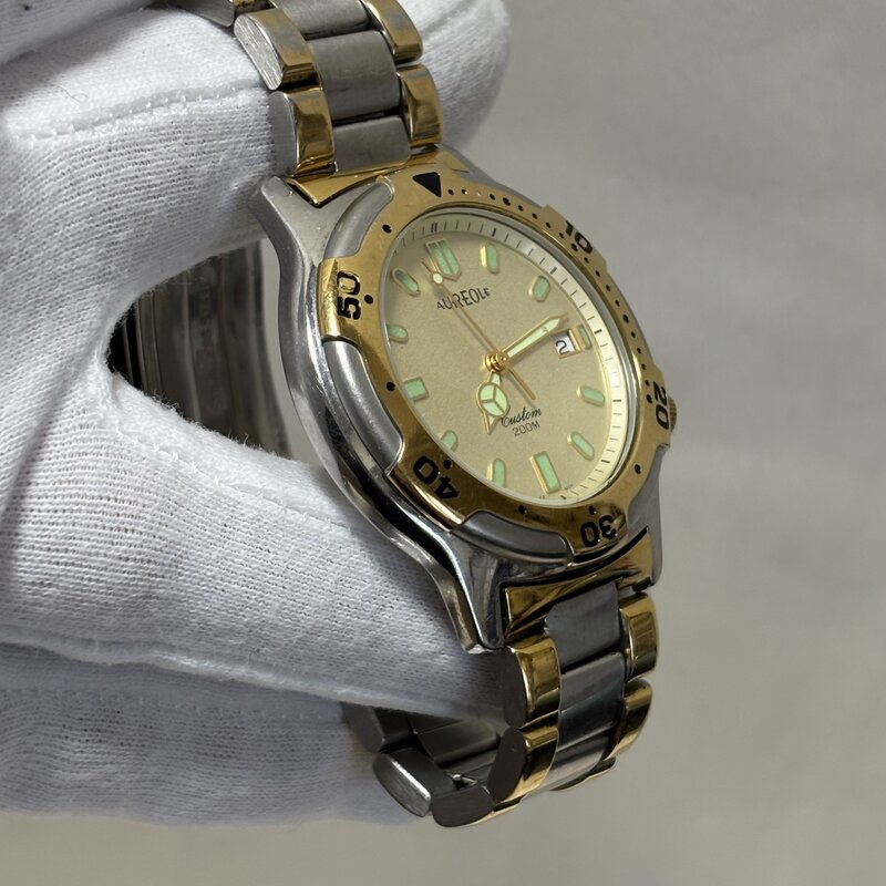1円~ 電池交換済 AUREOLE オルオール 腕時計 カスタム 200m ヴィンテージ コンビ クオーツ デイト SW-537M IW602AT01ARL//