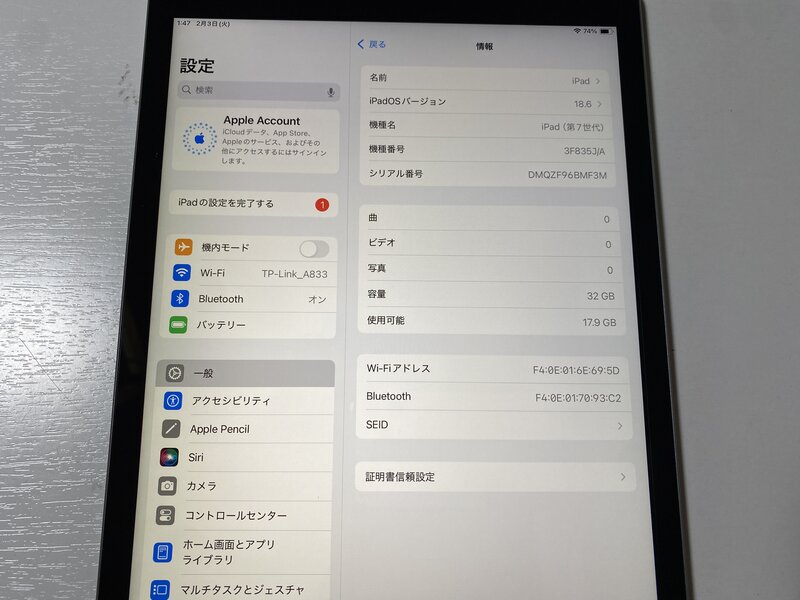 コンピュータ > タブレット > Apple > iPad本体