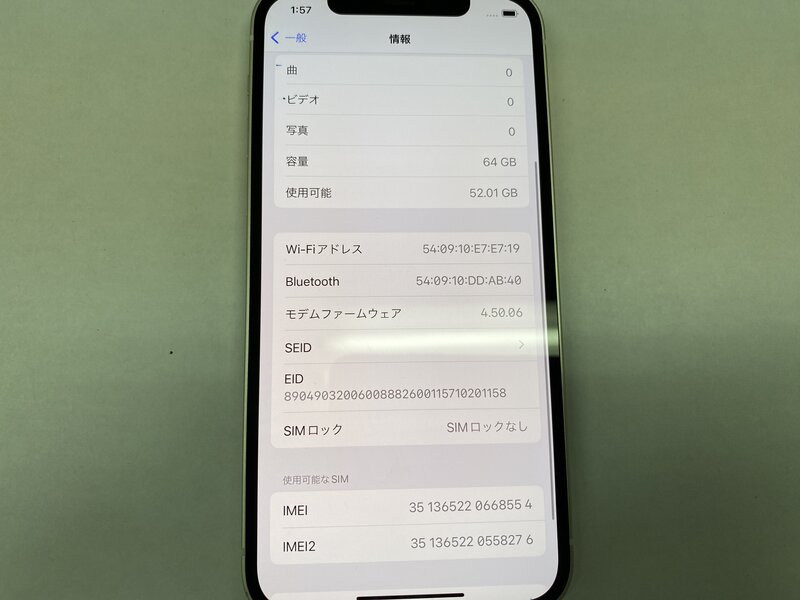 アクティベーションロック・・・OFF 液晶漏れ