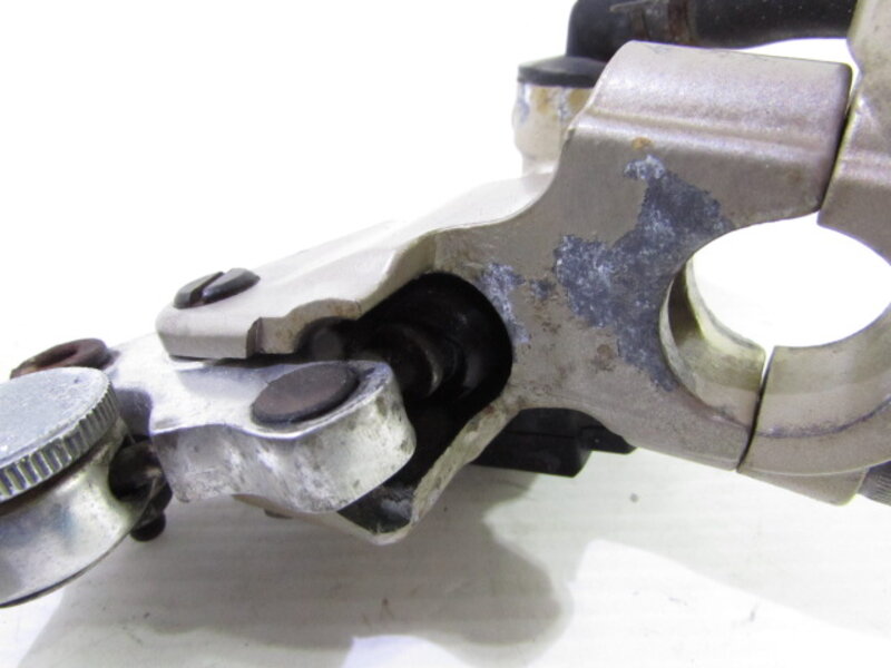 ☆フロントフォーク・・・目視で曲がりもなく、外観特に気になるような破損は御座いません!取り外し前に数回ボトムをさせてみましたところ少しOIL滲みが見られました! ダストブーツにひび割れが出てきております! インナーチューブ径約43mm、キャリパー取り付けピッチ約100mmとなります!