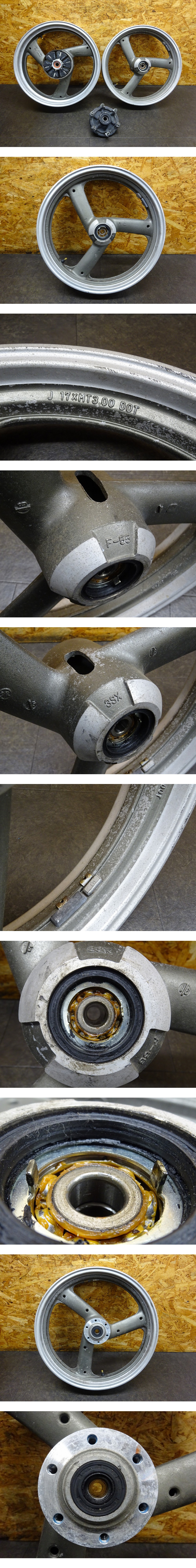 【260204】◆ ホイール前後セット(30) フロント 17×3.00 F-55 3SX リア 17×4.00 R-72 【検索:SRX400 3VN