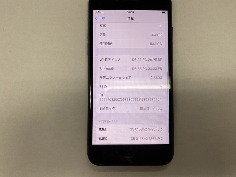 EW619 SIMフリー iPhoneSE 第3世代 ミッドナイト 64GB