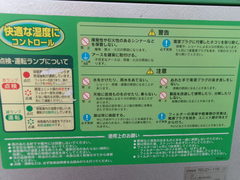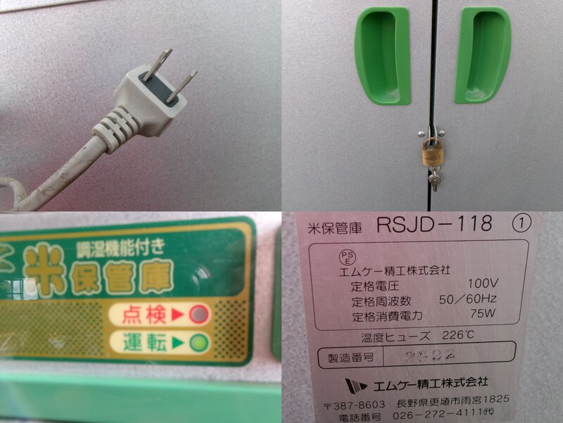 【直接引取限定】RSJD-118 エムケー精工 保管庫 換気ファン 18袋 玄米 米 野菜 通電確認OK 単相 100V 貯蔵庫 保管 中古 滋賀県
