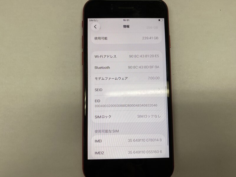 EW733 SIMフリー iPhoneSE 第2世代 レッド 256GB