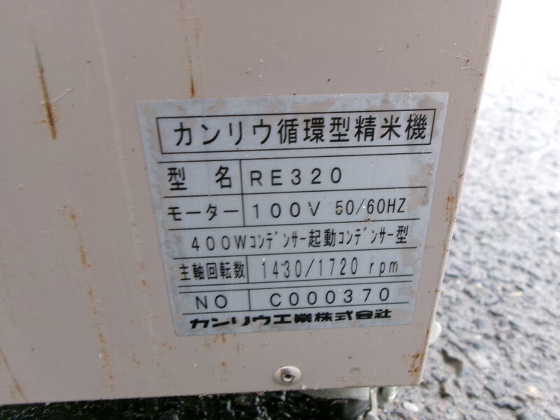 【直接引取限定】カンリウ RE320 循環型 精米機 通電確認OK 単相 100V 米 玄米 中古 滋賀県