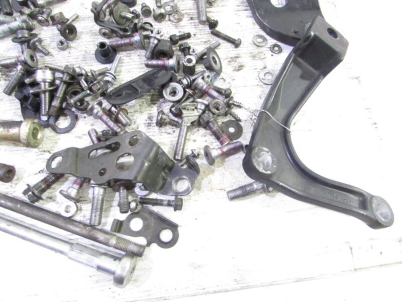 【足回り】 ☆フロントフォーク・・・程度良好!! 目視で曲がりもなく、外観特に気になるような破損は御座いません!取り外し前に数回ボトムをさせてみましたが特に気になるようなOIL滲みは見られませんでした!ボトムケースに少し傷が御座いますが比較的状態の良い商品となります! ダストブーツにひび割れが出てきております! ☆スイングアーム・・・目視にて曲がりもなく、外観特に気になるような破損は御座いません!シャフトなどのSETとなります! ☆リアサスペンション・・・美品!! 目視で曲がりも無く、外観特に気になるような破損は御座いません! インナーのプラが当たったような擦れ傷が御座います! 他はなかなか綺麗な美品になります! ☆ホイール・・・前後共に目視で曲がりもなく、スムーズに回転しておりました! ☆タイヤ・・・前後共に実働車より取り外しており、特に気になるような目立ったひび割れは見られず残り溝も御座います!