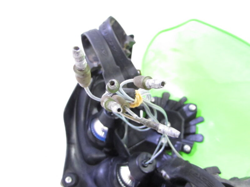 ☆フロントフォーク・・・目視で曲がりもなく、外観特に気になるような破損は御座いません!取り外し前に数回ボトムをさせてみましたが特に気になるようなOIL滲みは見られませんでした! ダストブーツにひび割れが出てきております! ボトムケースに軽度の腐食が出てきております!