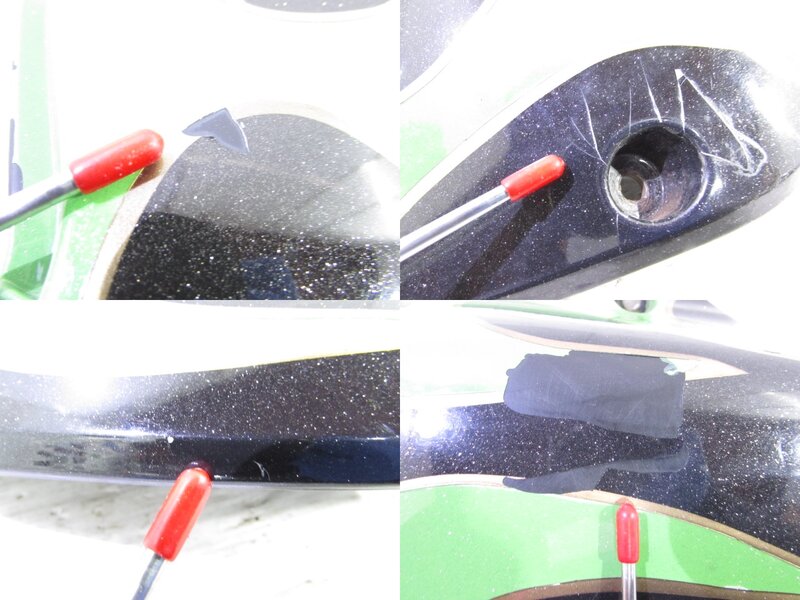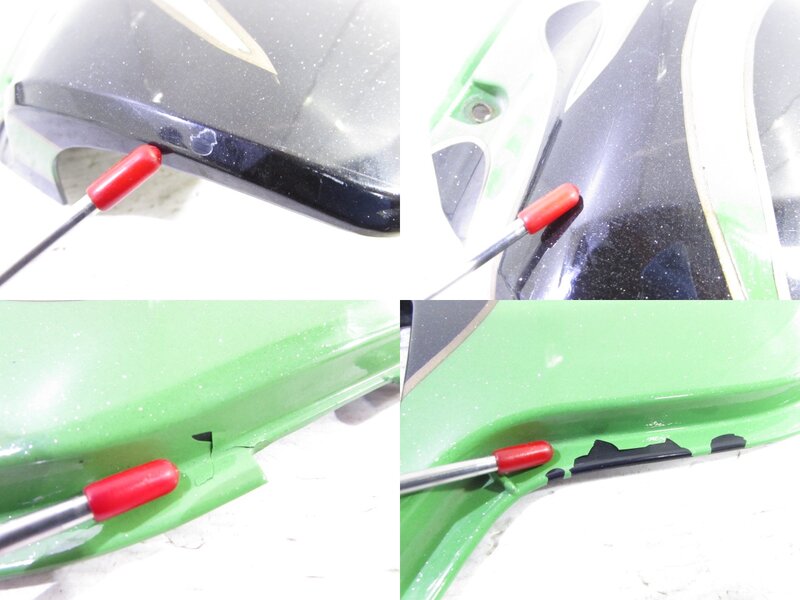 【外装】 ☆タンク・・・特に気になるような破損はなく、艶も御座います! タンク内見える範囲に特に気になるような錆は見られません! ☆ライトカウル・・・アチェルビス製!! 特に気になるような破損は御座いません! 一部傷が御座います! ☆Fフェンダー・・・社外製(A-TECH??)のFRP(カーボン??)フェンダーになります! 特に大きな破損は御座いません! 一部傷や表面欠けなど御座います! ☆シュラウド・・・左右共に特に大きな御座いません!一部傷や塗装剥げ、穴あけ加工が御座います! ☆サイドカバー・・・左右共に特に大きな御座いません!一部傷、塗装浮きや塗装剥げが御座います! ☆テールカウル・・・特に大きな破損は御座いません!一部傷や欠け、塗装剥げ等御座います! ☆Rタイヤフェンダー・・・A-TECH製のリアタイヤフェンダーになります! 特に気になるような破損は御座いません! 一部傷や塗装剥げが御座います! FRP(カーボン??)になります! ☆シート・・・特に気になるような破損は御座いません! 小傷が御座います!