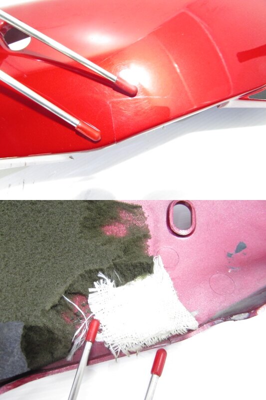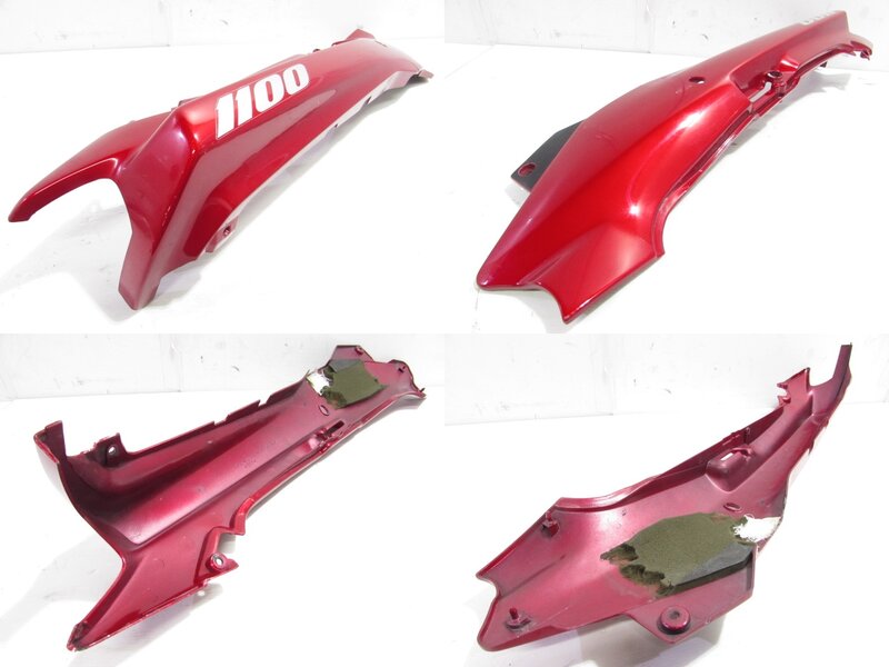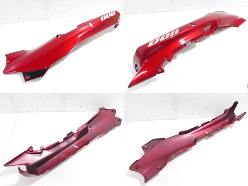 【外装】 ☆タンク・・・程度良好!! 特に気になるような破損はなく、艶も御座います! タンク内見える範囲に特に気になるような錆は見られません! 商品状態良好です! ☆スクリーン・・・特に気になるような破損は御座いません! ネジ止め部に一部小さなひび割れが御座います! ☆アッパーカウル・・・特に大きな破損はなく、艶も御座います! 一部傷や欠け、ひび割れ補修など御座います! ☆アンダーカウル・・・左右共に特に大きな破損はなく、艶も御座います! 一部傷やひび割れ、欠けが御座います! ☆Fフェンダー・・・程度良好!! 特に気になるような破損はなく、艶も御座います! 商品状態良好です! ☆テールカウル・・・特に大きな破損はなく、艶も御座います! 一部ひび割れや補修、欠けが御座います! ☆シート・・・特に大きな破損は御座いません! フチ部にいくつか小さな小破れが御座います!