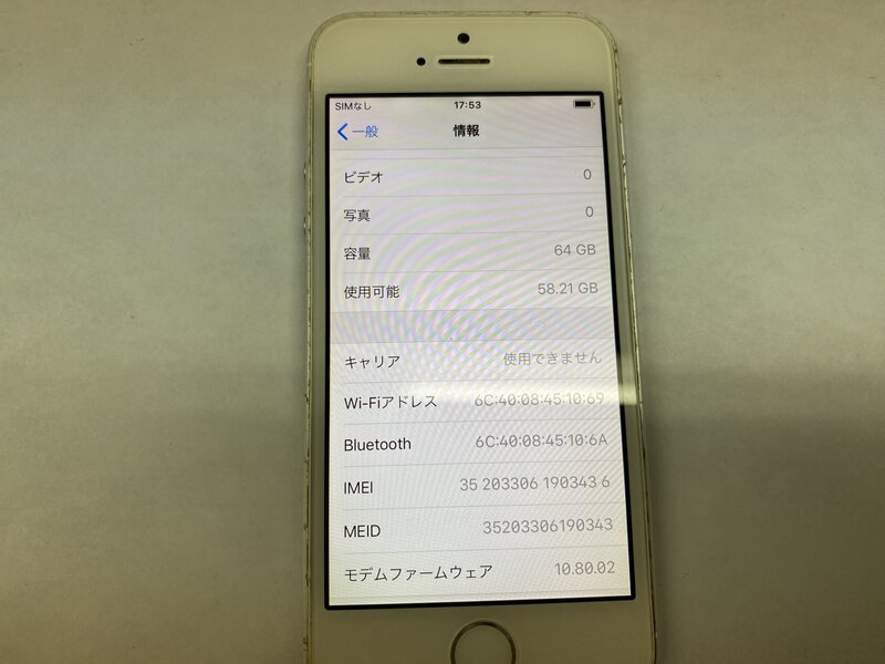 EX492 au iPhone5s シルバー 64GB 判定○