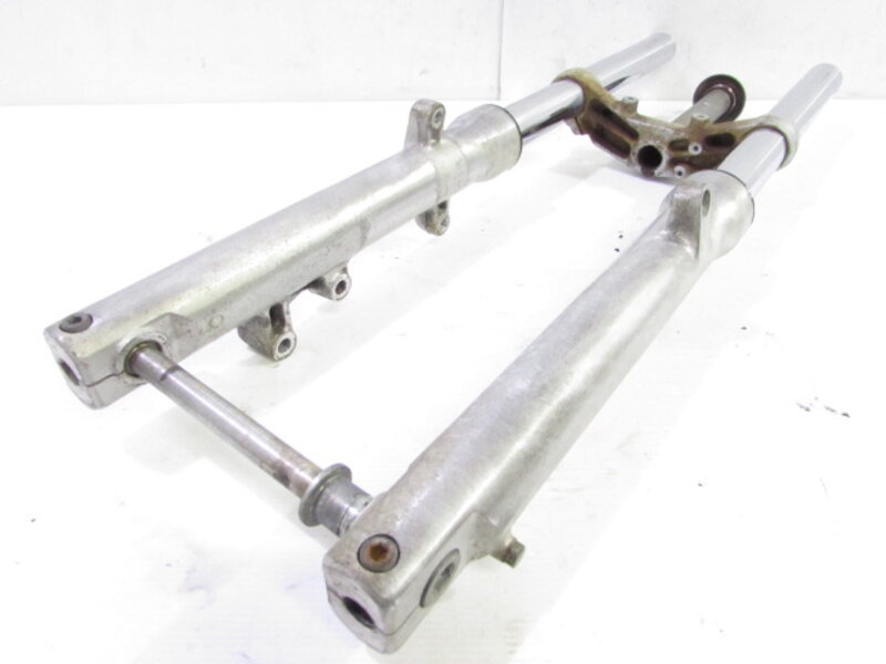 【足回り】 ☆フロントフォーク・・・目視で曲がりもなく、外観特に気になるような破損は御座いません!取り外し前に数回ボトムをさせてみましたが特に気になるようなOIL滲みは見られませんでした! ダストブーツに破れが出てきております! ☆スイングアーム・・・目視にて曲がりもなく、外観特に気になるような破損は御座いません!シャフトなどのSETとなります! ☆リアサスペンション・・・目視で曲がりも無く、外観特に気になるような破損は御座いません! リンク付きとなります! ☆ホイール・・・前後共に目視で曲がりもなく、スムーズに回転しておりました! ☆タイヤ・・・前後共に実働車より取り外しており残り溝も御座いますのでこのままでのご使用は可能と思いますが、消耗品となりますので商品画像をご覧頂き状態の把握をお願い致します!
