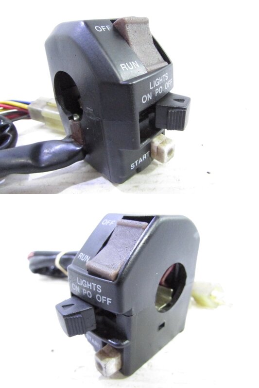 【商品に関してのお願い】※了承できない方は絶対に入札しないでください※ ■車両より取り外した中古部品となり経年や使用に伴う腐食・傷・錆・汚れ・補修跡などがある場合が御座いますので商品画像をよくご覧頂き商品状態の把握をされたうえ、御検討くださいますよう御願い致します。 ■特別に記載がない限り出品物は写真の物が全てとなります。使用にあたりたとえその他の部品が必要な場合でも商品画像に写っていなければ何も付属致しません。 ■固定部分の爪など新品時のすべて正常状態を把握できておりませんので破損に気が付かない場合が御座います。商品画像をご覧頂きご確認ご了承のうえご検討を御願い致します。 ■約35年前の大変古い車両よりパーツを取り外しておりますので動作確認済商品でありましても突然の故障や寿命または経年劣化により輸送中の軽衝等での破損が起きてしまう可能性が御座います。すべての商品一切の保障は出来かねますので必ず御了承の上ご検討下さいますようお願い致します。 ■配線の加工やちぎれ等がある場合が御座います!すべての正規状態を把握できておりませんので商品画像をよくご覧頂き必ず商品状態の把握を御願い致します。 ■入庫車両よりパーツを取り外しておりますので前オーナー様等によりパーツの加工などが施されている場合が御座います! すべての商品の正式な状態が把握できていない、また内部改造の場合は外観ではわかりませんのでそのような内容の見逃しや記載間違いが起こる可能性が御座います。ご了承、ご納得の上ご入札下さいますようお願いいたします。 ■タイヤ、スプロケット、電球(LED含む)、ブレーキパット、エレメント、各部ガスケットやシールパッキン、樹脂製パーツ、その他消耗パーツの劣化や消耗に関しましては全て交換前提でのご検討をよろしくお願い致します。各商品に消耗品が付属していなかった場合や劣化によるオイル漏れ、滲みなどがあった場合も交換前提の扱いとなりますのでクレームなどは一切対応いたしませんので必ずご了承の上でご入札下さいますようお願いいたします。 ■商品画像にてよくわからない箇所、見にくい箇所が御座いましたらご自身で判断せず必ずご連絡くださいますよう御願い致します。落札後に見えない部分に何らかの不具合があった場合も事前確認の無い場合一切のクレーム対応は致しませんので必ずご連絡および確認されますようお願いいたします。 ■動作確認済みの電装パーツ等がタイミング悪く到着時に内部破損(寿命等)等したりする可能性が万が一にも御座います!あくまで全て中古パーツとなり使用年月もわかりませんので各パーツの到着保証は一切出来ません。動作OKの記載はあくまで当社での確認時にての判断となり保障では御座いませんので必ずご了承の上ご入札下さいますようお願いいたします。 到着時に不具合があった場合などの返品交換などの対応は一切行いません。 ■エンジンの動作確認などはあくまで当社検査時の状態を記載しております。その時のセッティングやオイルの硬さにより調子の良し悪し、煙吐きの有無や大小、劣化による突然のシールガスケット類の不良によるオイル漏れや煙吐き、圧縮不良などが起きうる可能性が万が一にも御座います!検査はあくまでその時の状態ですので到着時の完動保証では御座いませんので一切の保証は出来かねます。中古パーツという事を必ずご理解ご了承の上ご検討くださいますようお願いいたします。 ■曲がりやサイズ、傷などの確認は専用測定器ではなく目視、または簡易測定器(メジャー・ノギス)にて行っておりますのでご了承のうえご検討くださいますよう御願い致します。到着時に万が一曲りが確認された場合も保証は出来かねます! ■メーターの動作確認済記載はスピード/タコの針、またはスピード/タコのデジタル表示の動作確認となりますのでその他付属しているメーターや計りの確認は行っておりませんので必ずご了承の上ご検討くださいますようお願いいたします。時々動作確認済みメーターが到着時に不具合が起きるという事例が御座いますが動作の確認はあくまで検査時の表記となりますので到着保障は一切できません。 ■ブレーキパーツの動作確認、固着や引きずりの確認は車両装着時の車両動作確認にて同時に行っており、取り外ししてからのパーツ単体での確認は行っておりません。万が一のピストンの動きが悪いや片方動かないなどあった場合の補償は一切行っておりませんので必ずご了承の上でご入札くださいますようお願いいたします。 ■社外製パーツには他車種用の社外製パーツが混ざっている可能性も御座います。 その際加工や私製のステー等が必要になってくる場合が御座いますので社外製パーツの取り付けに関しましては必ずご自身の責任においてお願い致します。 ■タイトルに記載されている検索ワードは流用を保証するものでは御座いません。すべての商品の