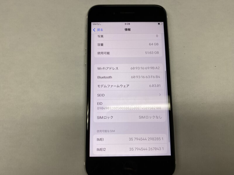 EX847 SIMフリー iPhoneSE 第2世代 ホワイト 64GB