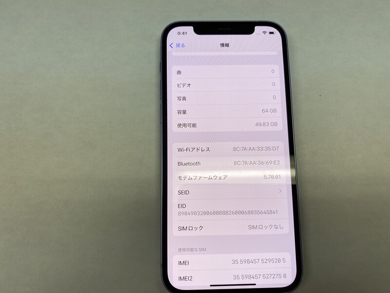 EX851 SIMフリー iPhone12 パープル 64GB