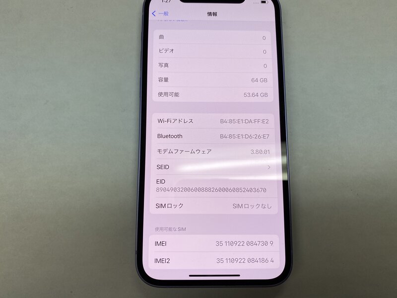 EX863 SIMフリー iPhone12 パープル 64GB