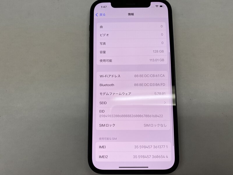 EX871 SIMフリー iPhone12 ブラック 128GB ジャンク ロックOFF