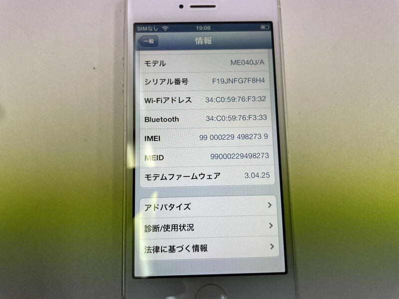 MK053 au iPhone5 16GB ホワイト 判定〇