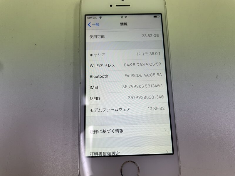MK056 softbank iPhone5s 32GB シルバー 判定〇