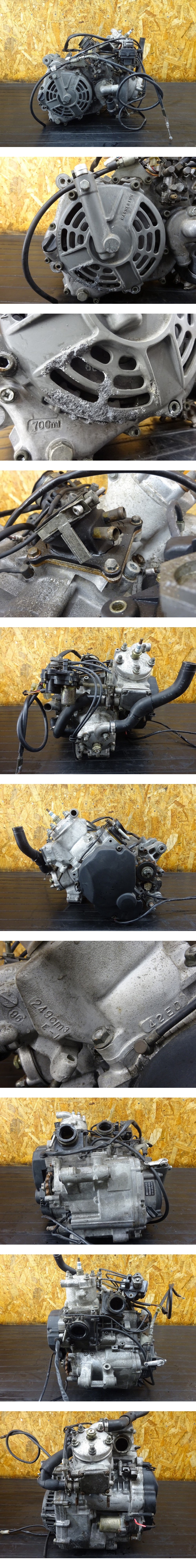 エンジン単体入庫のため詳細不明。エンジン番号J209-101536VJ23Aのエンジンだと思います。セルモーター不良?セル直にて通電しましたがクランキング出来ませんでした。クランク手回しにてスムーズにクランキング出来ました。オイルにじみ有。写真にてよくご確認の上ご入札お願いします。