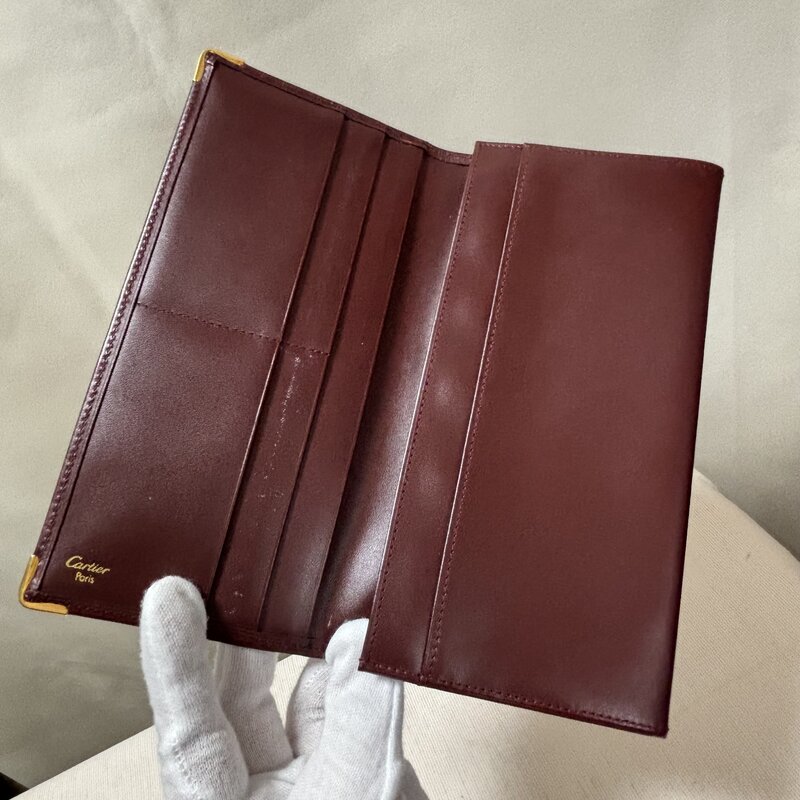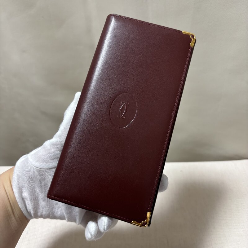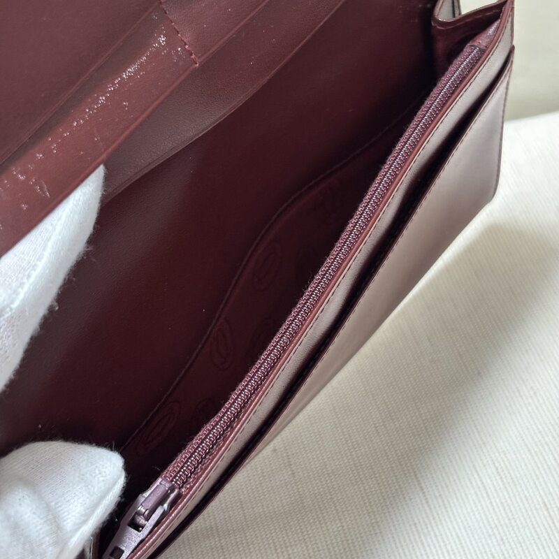 1円~ Cartier カルティエ マストライン レザー 二つ折り 長財布 ボルドー系 札入れ 小銭入れ 内側に小難あり IW603AA03CRT//